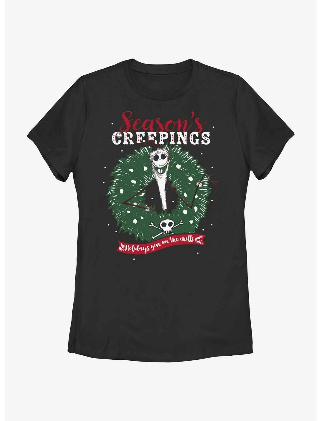 HER Disney The Nightmare Before Christmas Santa Jack Season’s Creepings Wreath Womens T-Shirt