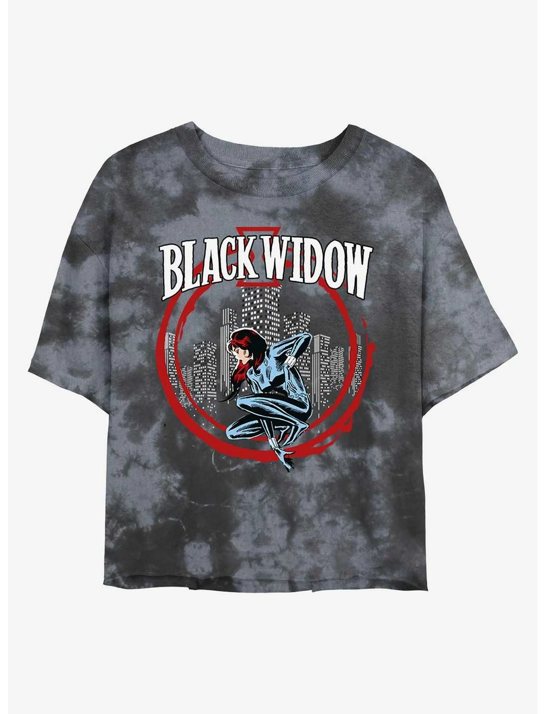 Marvel Black Widow City Circle Womens Tie-Dye Crop T-Shirt