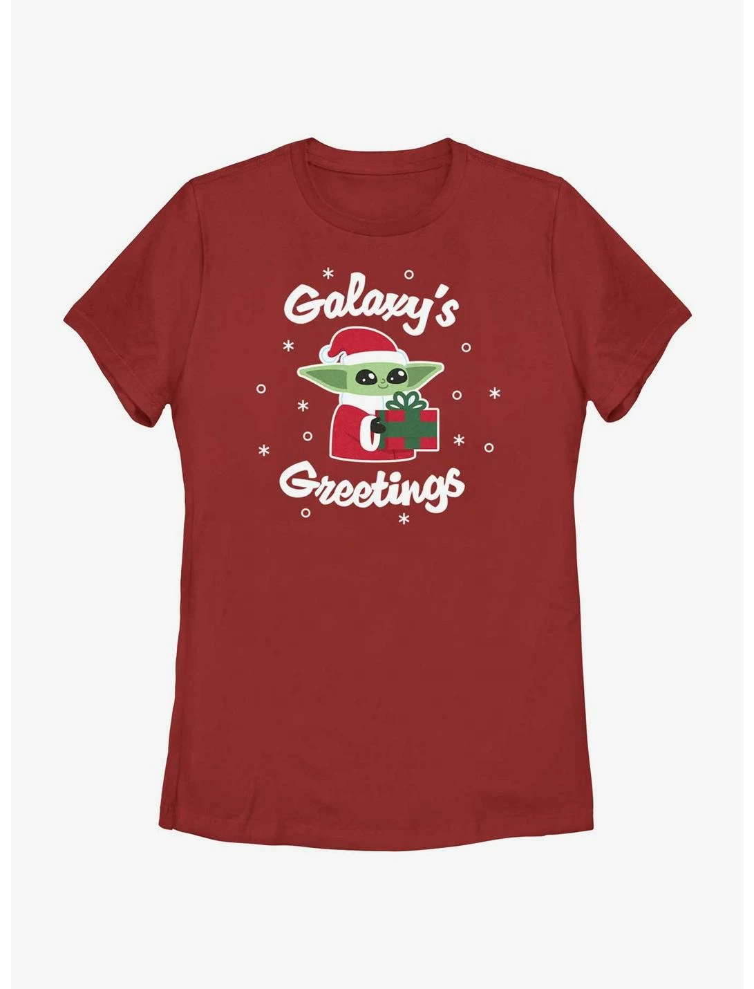 Star Wars The Mandalorian Santa Grogu Galaxy’s Greetings Womens T-Shirt