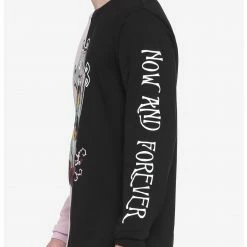 We all hope to find love as undying as Jack and Sally’s. This The Nightmare Before Christmas long-sleeved tee features a purple and black split design. There’s a graphic of Jack and Sally in a coffin, framed by roses, with contrasting backgrounds. “Now and forever” is printed on the left sleeve.